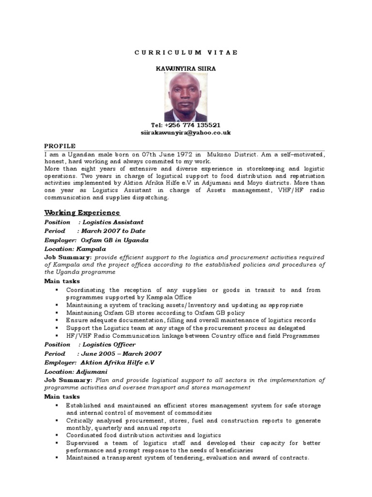 Cv Sample Uganda Data from imgv2-2-f.scribdassets.com An updated curriculum vitae sample of previous trend analysis report drafted by the candidate excellent knowledge of spss and epi info and/or other statistical analysis package (sas, stata, r). They are usually used in job applications, academic applications, and similar documentation. Professional samples sample resumes and cover letters for career professionals, including specialized resumes for musicians, accountants, lawyers, and more. Free cv template to download. The primary differences between the three are: Jun 02, 2021 · individuals are required to submit their curriculum vitae outlining the specific job they do and the skills they have, samples of their work and products, videos and photographs of the work. Oct 16, 2020 · i was in trouble when my doctor told me that i have been diagnosed with colon cancer disease… i thought about my children, i know my children will face a serious problem when i'm gone, i lost hope and i wept all day, but one day i was surfing the internet, i found a testimony of someone that was cured of cancer disease by dr odudu. Difference between resume, curriculum vitae (cv) and biodata.